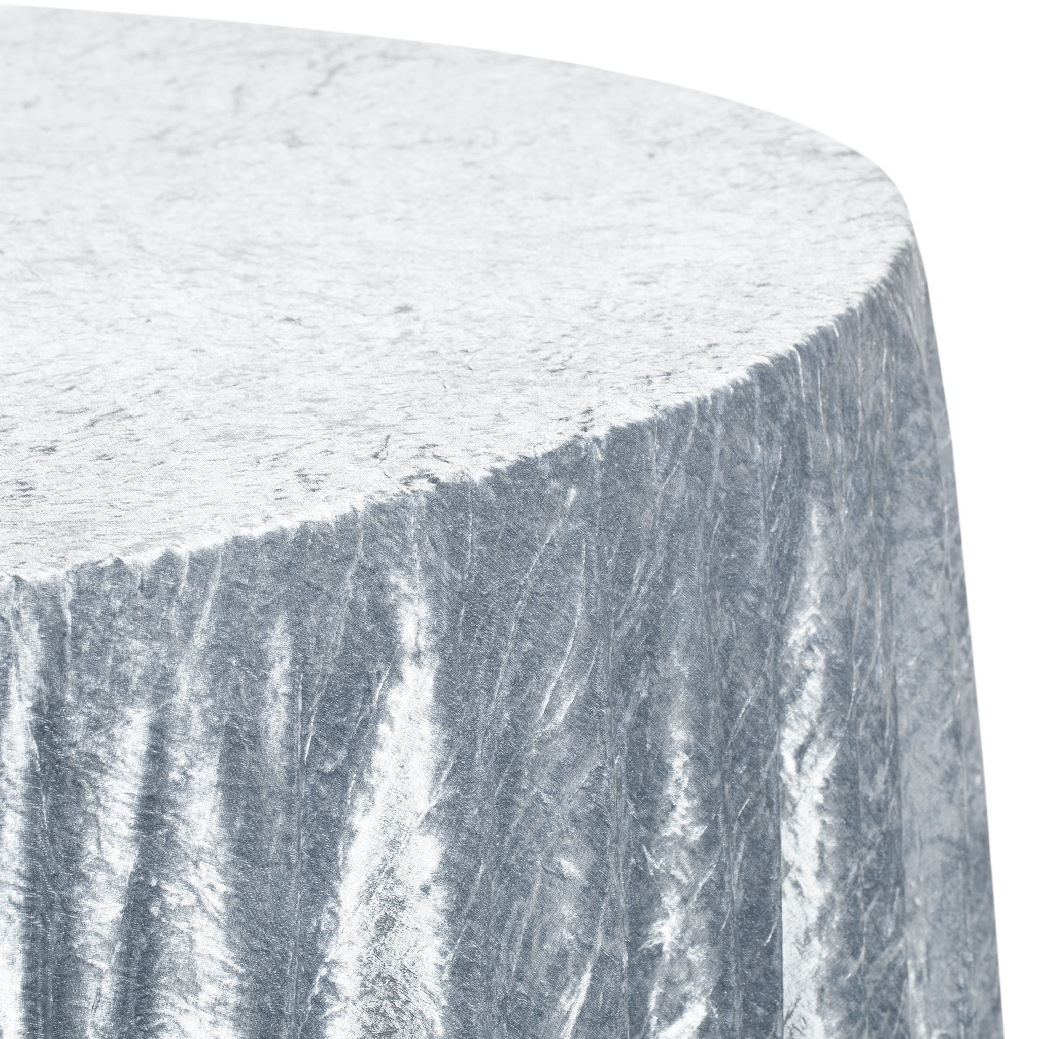 Our 120” round velvet tablecloth will touch the floor on a 60" round table top and 6” drop on 72” round tables. It provides a generous overhang that flows gracefully to the floor. Watch as the light dances across the surface of this fabric, creating a mesmerizing ambiance that captivates everyone.