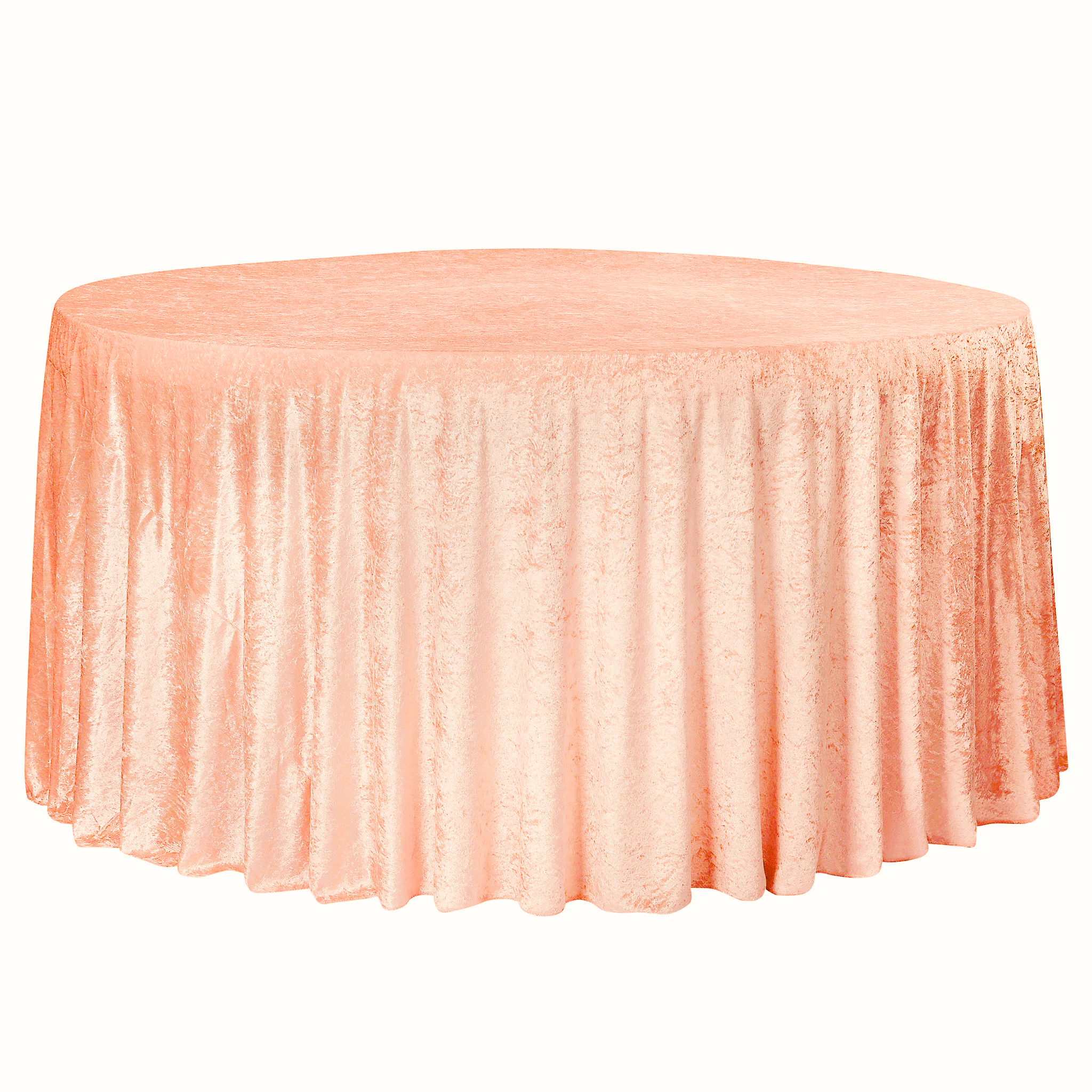 Peach velvet round tablecloths exude an air of timeless beauty and versatility, making it a symbol of sleek elegance. The color peach carries an innate sense of mystery, formality, and luxury. It creates a backdrop that allows other colors and elements to pop.
