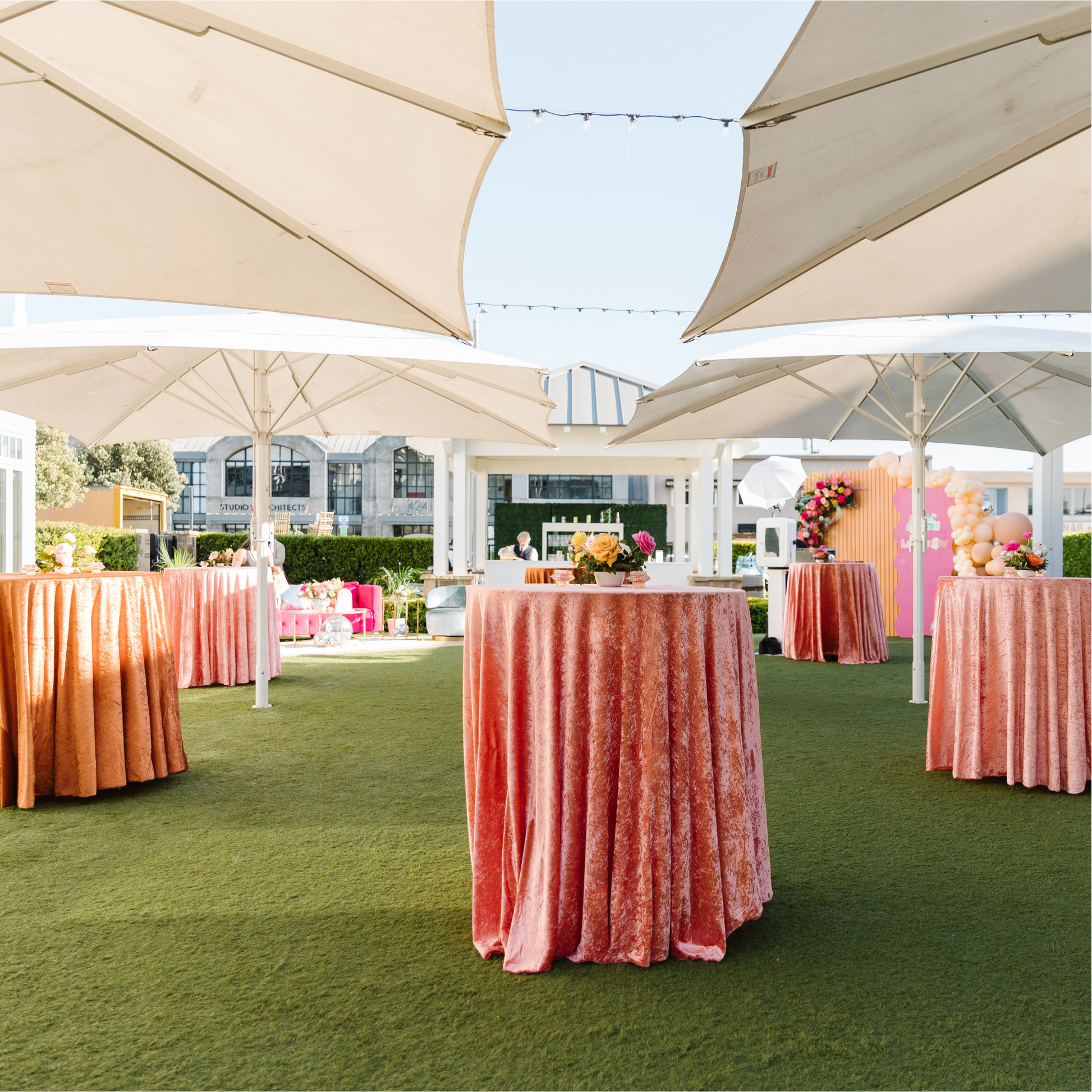 For a touch of sophistication, consider pairing the coral tablecloths with a dusty blue accordion crinkle taffeta napkin. The subtle interplay of colors adds depth to your table settings, creating an inviting and harmonious ambiance. Complete the look with CV Linens™’ charger plates, which serve as elegant foundations for your tableware, enhancing the overall aesthetic.