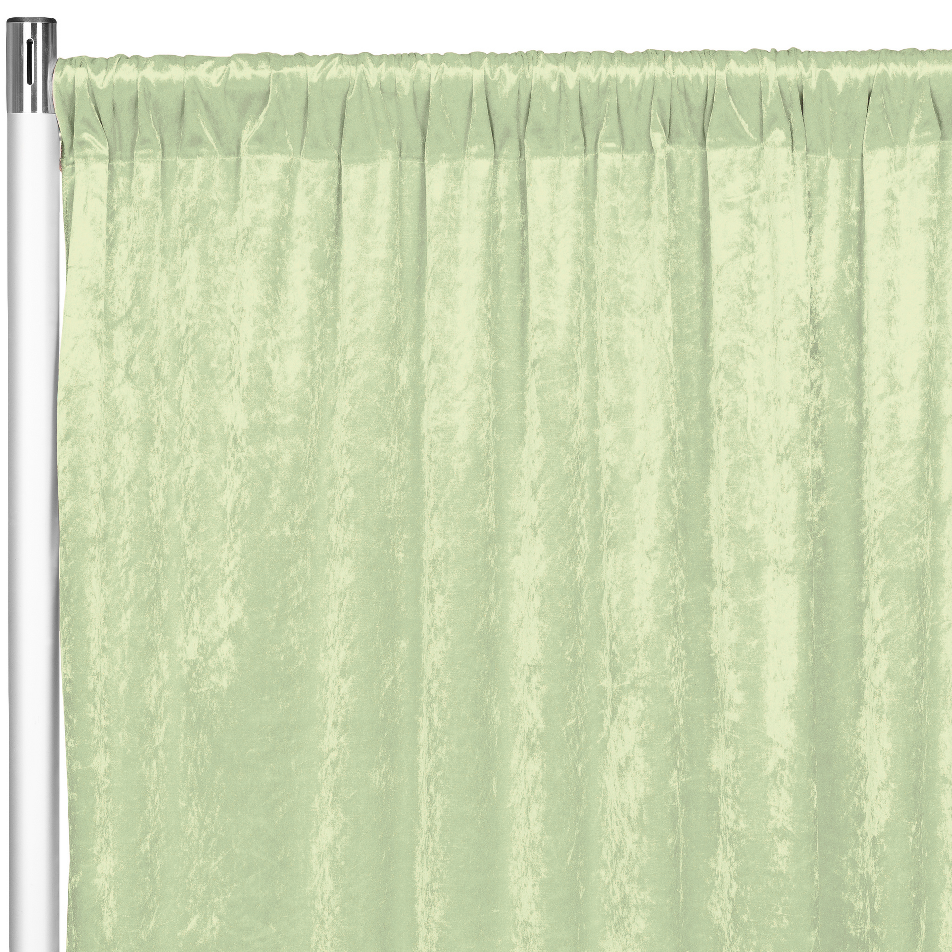 A question that often arises with event decorators, party planners, and brides is, what is the best fabric to use for the wedding reception or ceremony drapery? Our Sage Green Velvet 14ft H x 52" Drape/Backdrop Curtain Panel stylishly serves as a luxe setting that brings an upscale atmosphere to your special day! Velvet brings about a whole new level of textural dimension to your wedding decor scheme. The warm and soft sheen of velvet helps create intimate vibes when paired with candlelight and complementing blooms. It's a transitional event fabric that can play a pivotal role in your big day as a ceremony backdrop, or it can take on a more low key vibe when used as a photo backdrop. A velvet stage curtain can be used at your ceremony to highlight a live band as well as serve as a wall covering to bring maximum attention when highlighting the head wedding party table.