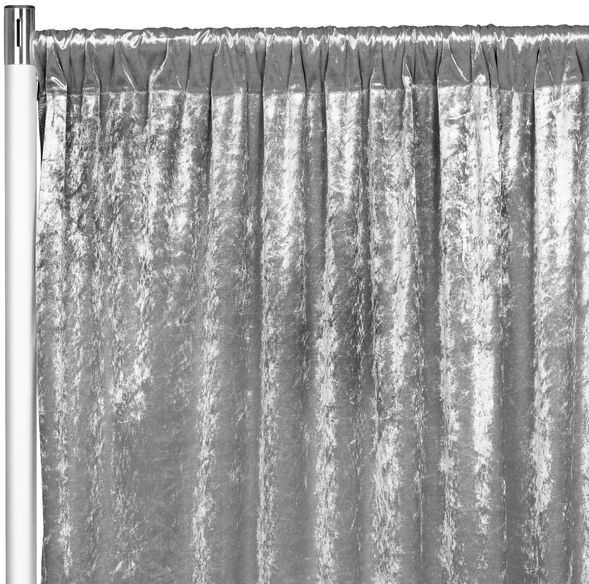 A question that often arises with event decorators, party planners, and brides is, what is the best fabric to use for the wedding reception or ceremony drapery? Our Silver Velvet 14ft H x 52" Drape/Backdrop Curtain Panel stylishly serves as a luxe setting that brings an upscale atmosphere to your special day! Velvet brings about a whole new level of textural dimension to your wedding decor scheme. The warm and soft sheen of velvet helps create intimate vibes when paired with candlelight and complementing blooms. It's a transitional event fabric that can play a pivotal role in your big day as a ceremony backdrop, or it can take on a more low key vibe when used as a photo backdrop. A velvet stage curtain can be used at your ceremony to highlight a live band as well as serve as a wall covering to bring maximum attention when highlighting the head wedding party table.