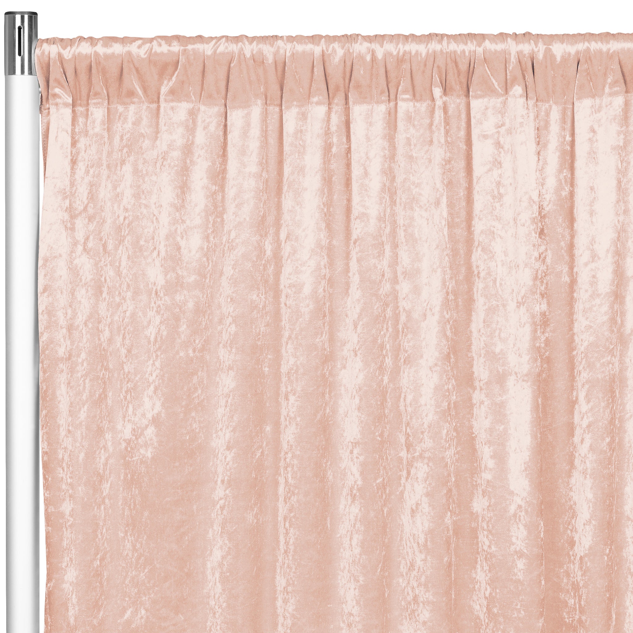A question that often arises with event decorators, party planners, and brides is, what is the best fabric to use for the wedding reception or ceremony drapery? Our Blush/Rose Gold Velvet 16ft H x 52" Drape/Backdrop Curtain Panel stylishly serves as a luxe setting that brings an upscale atmosphere to your special day! Velvet brings about a whole new level of textural dimension to your wedding decor scheme. The warm and soft sheen of velvet helps create intimate vibes when paired with candlelight and complementing blooms. It's a transitional event fabric that can play a pivotal role in your big day as a ceremony backdrop, or it can take on a more low key vibe when used as a photo backdrop. A velvet stage curtain can be used at your ceremony to highlight a live band as well as serve as a wall covering to bring maximum attention when highlighting the head wedding party table.