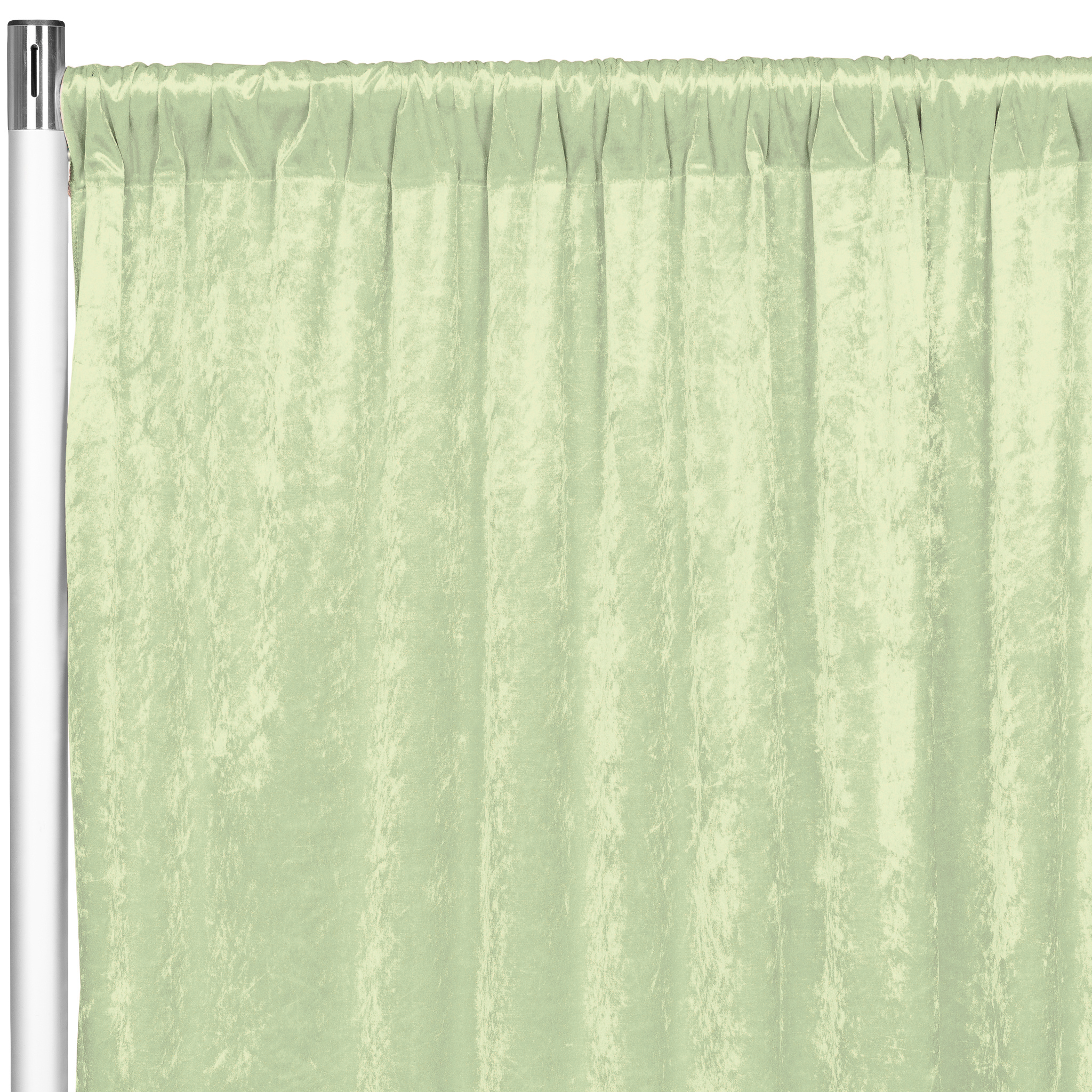 A question that often arises with event decorators, party planners, and brides is, what is the best fabric to use for the wedding reception or ceremony drapery? Our Sage Green Velvet 18ft H x 52" Drape/Backdrop Curtain Panel stylishly serves as a luxe setting that brings an upscale atmosphere to your special day! Velvet brings about a whole new level of textural dimension to your wedding decor scheme. The warm and soft sheen of velvet helps create intimate vibes when paired with candlelight and complementing blooms. It's a transitional event fabric that can play a pivotal role in your big day as a ceremony backdrop, or it can take on a more low key vibe when used as a photo backdrop. A velvet stage curtain can be used at your ceremony to highlight a live band as well as serve as a wall covering to bring maximum attention when highlighting the head wedding party table.