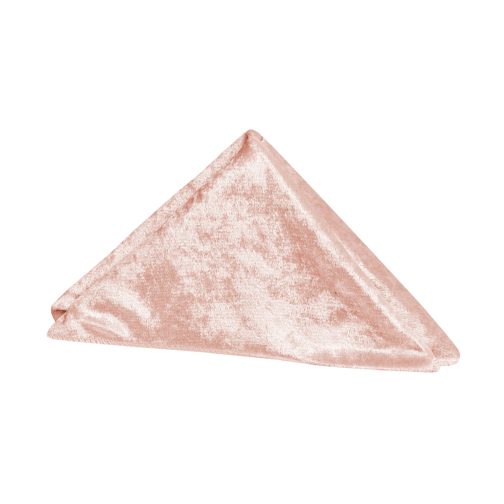 Made out of velvet, these tablecloth napkins have a textured feel and soft sheen. Velvet is a popular fabric option for event decorators. It evokes a touch of elegance and sophistication in any event space. Easily get a polished look with the classic shade of blush/rose gold.