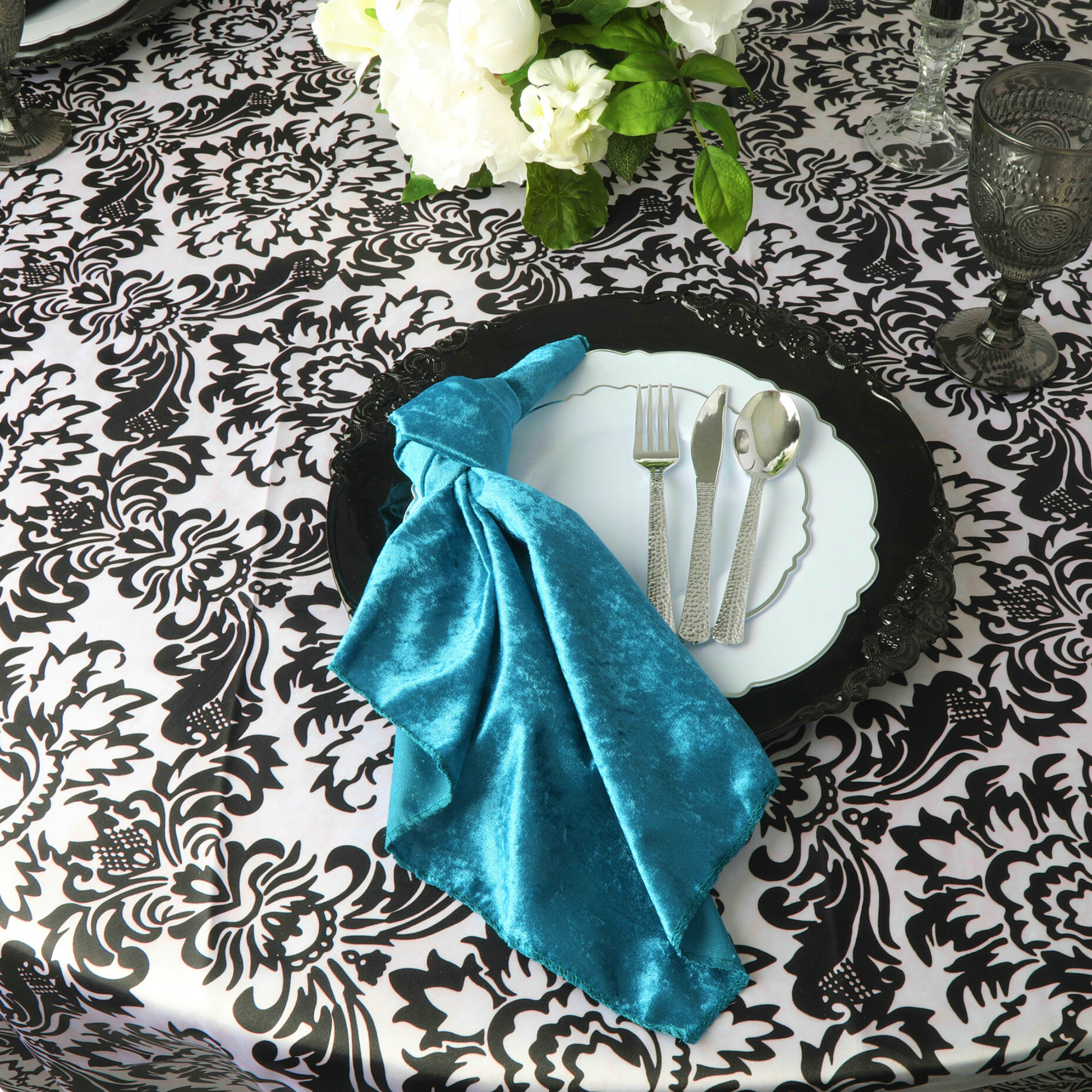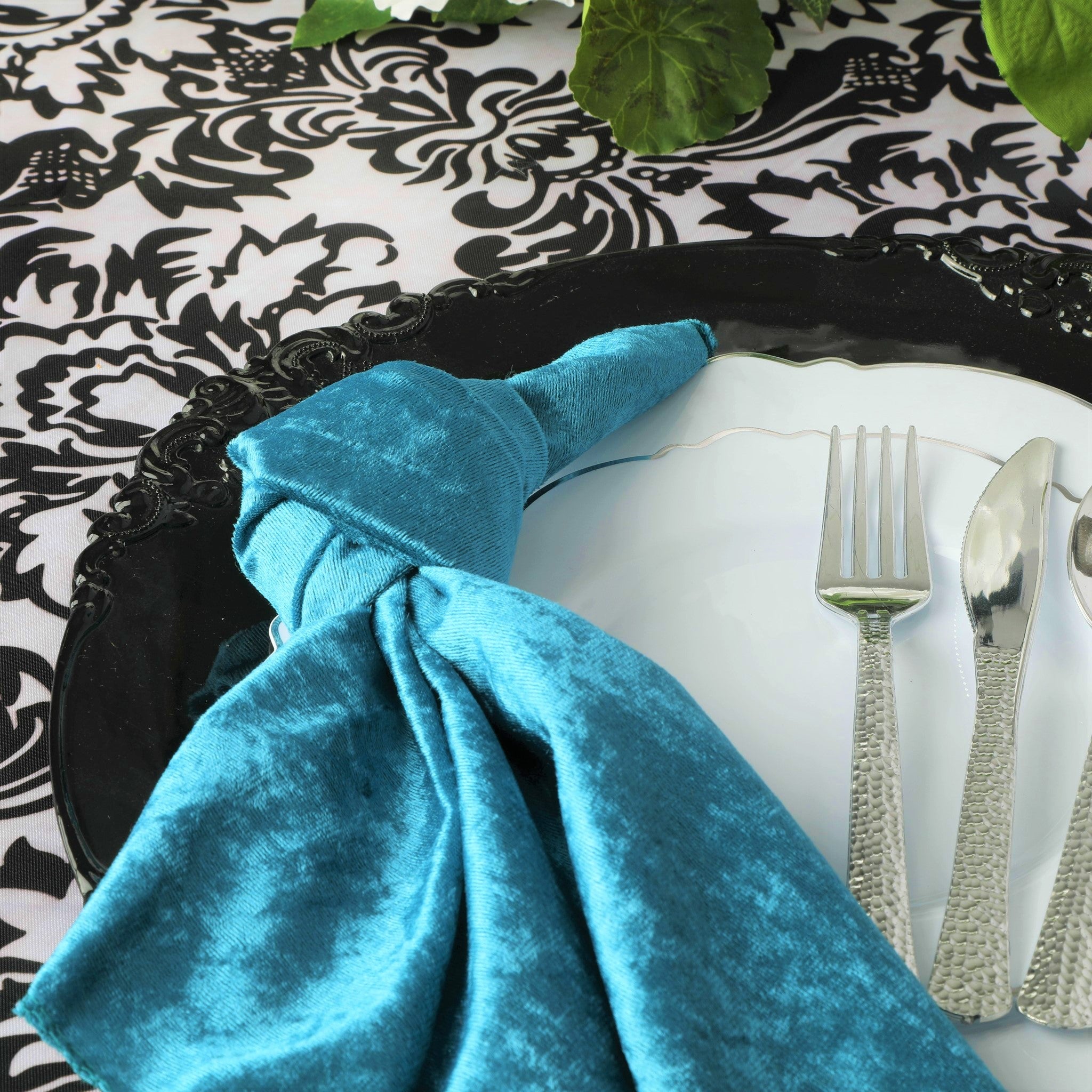 Made out of velvet, these tablecloth napkins have a textured feel and soft sheen. Velvet is a popular fabric option for event decorators. It evokes a touch of elegance and sophistication in any event space. Easily get a polished look with the classic shade of dark teal.