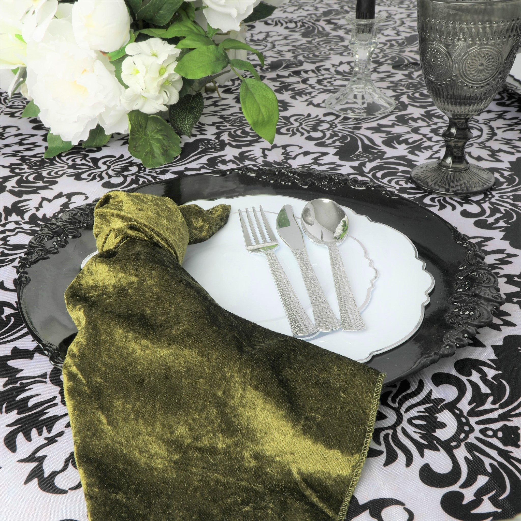 Table napkins are an essential part of any event planner’s decor arsenal. Looking for linen napkins for a night of luxurious dining? Our 20x20 Velvet Table Napkins in Sleek Olive Green may be the perfect fit for you.