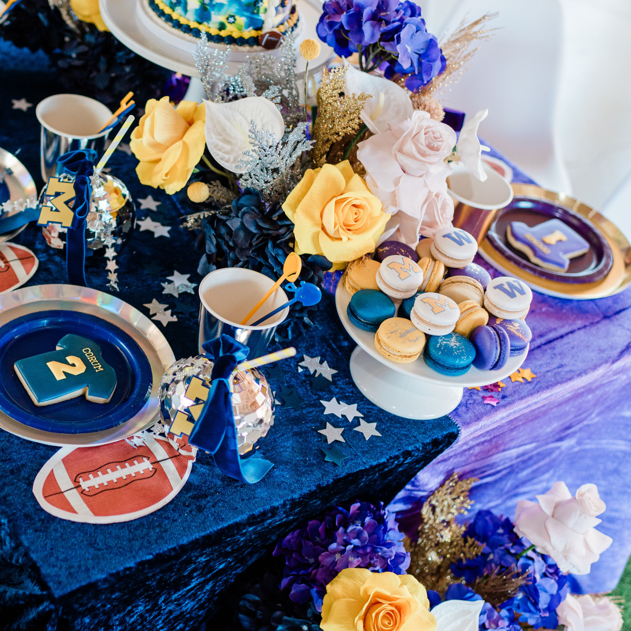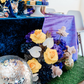 Decorating with a Purple Velvet Tablecloth creates a luxurious and elegant atmosphere, perfect for any sophisticated event or dining space. To enhance this setting, use contrasting colored table linens to make the arrangement pop. Then, incorporate elegant centerpieces such as tall candlesticks, candelabras, or floral arrangements in crystal vases or with metallic accents. Soft lighting from candles and fairy lights adds warmth and a romantic glow, complementing the velvet's light-absorbing quality.