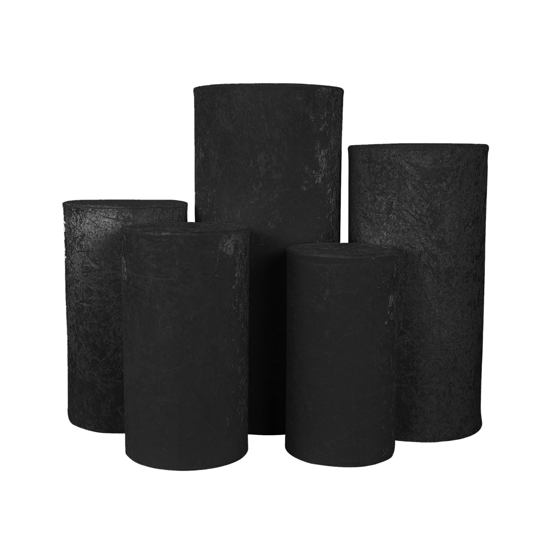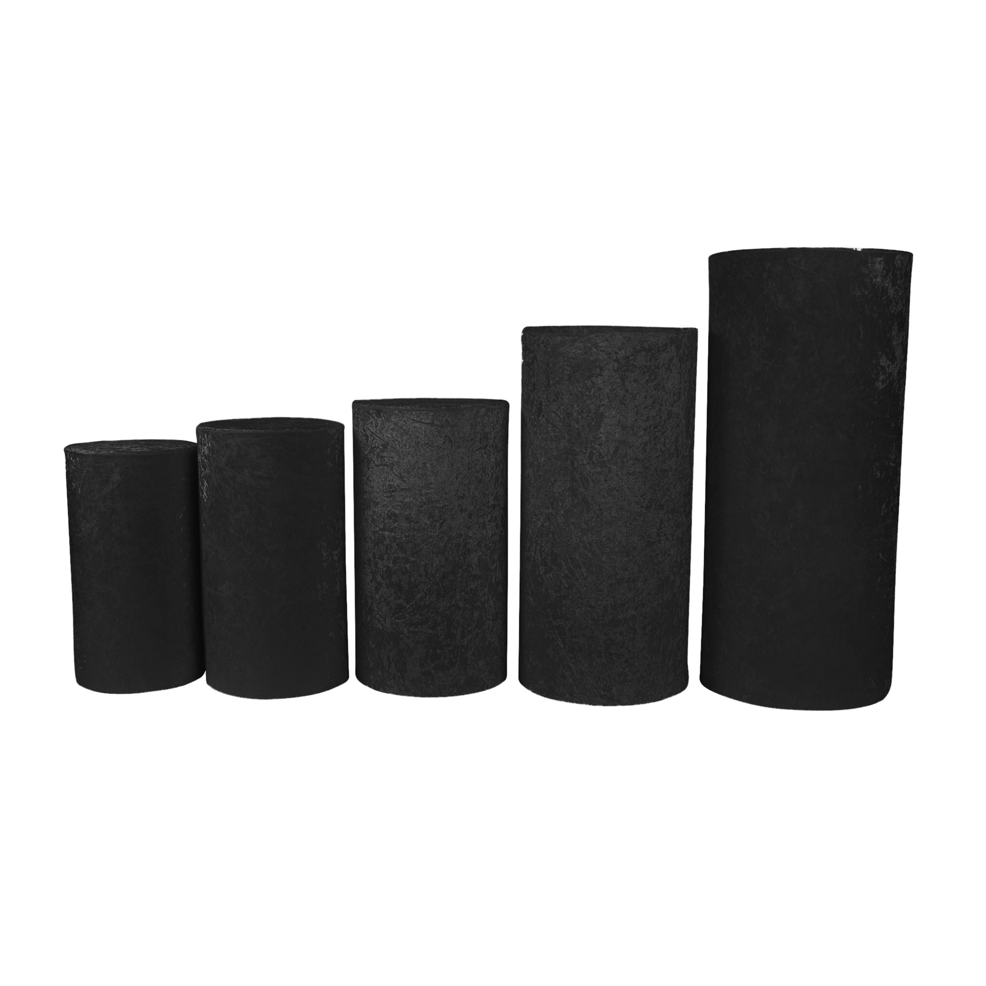 Create an enhanced dessert table design and presentation for your backdrops at special events with our Velvet Covers for Metal Cylinder Pedestal Stands 5 pcs/set - Black! These elegant velvet covers for cylinder pedestals bring a heightened visual appeal to blend more seamlessly with your event setups. The purpose of using a pillar cover is to accentuate the feel and look of cakes, desserts, and pastries on a metal pedestal dessert table as it highlights and compliments the colors and theme of your party.