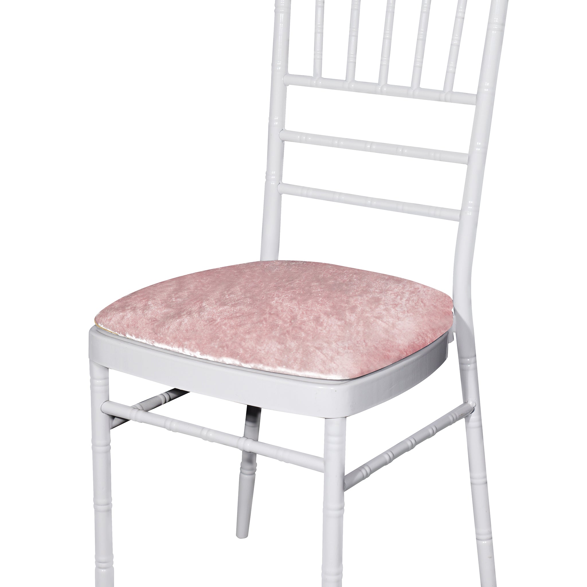 Features of Blush/Rose Gold Velvet Chiavari Seat Pad Covers