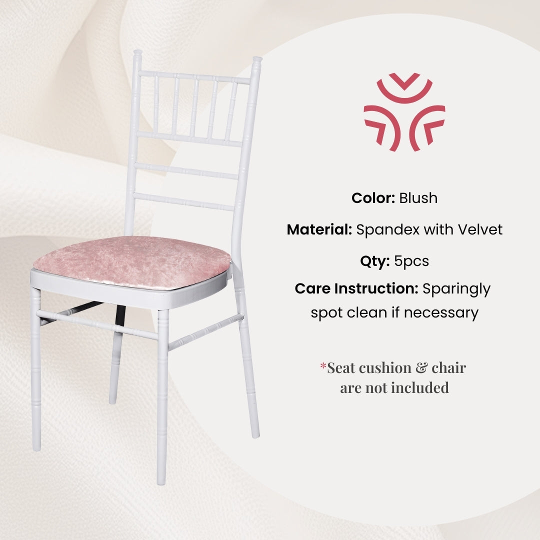 5 pcs/pk Velvet Spandex Chiavari Seat Pad Cover - Blush/Rose Gold