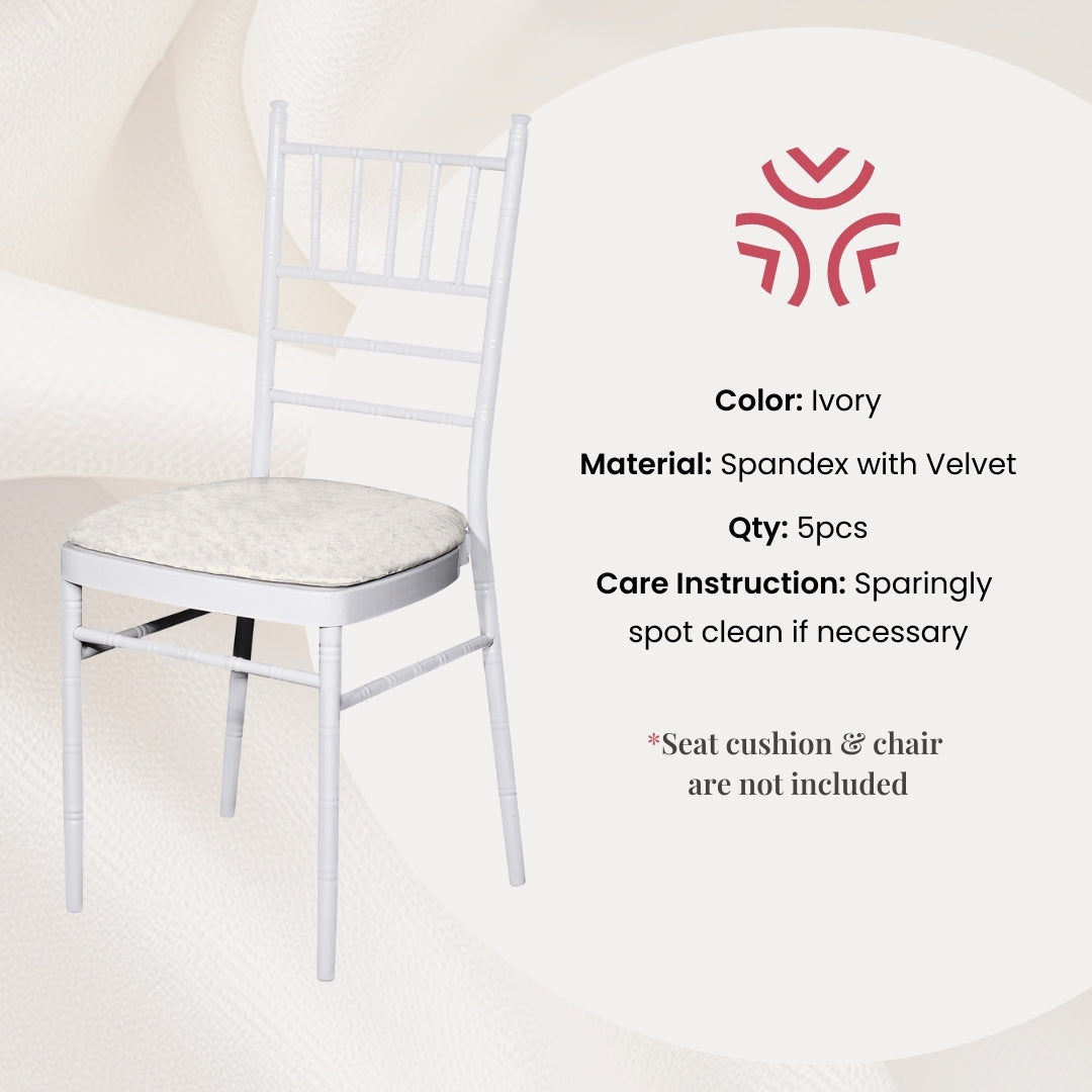 5 pcs/pk Velvet Spandex Chiavari Seat Pad Cover - Ivory