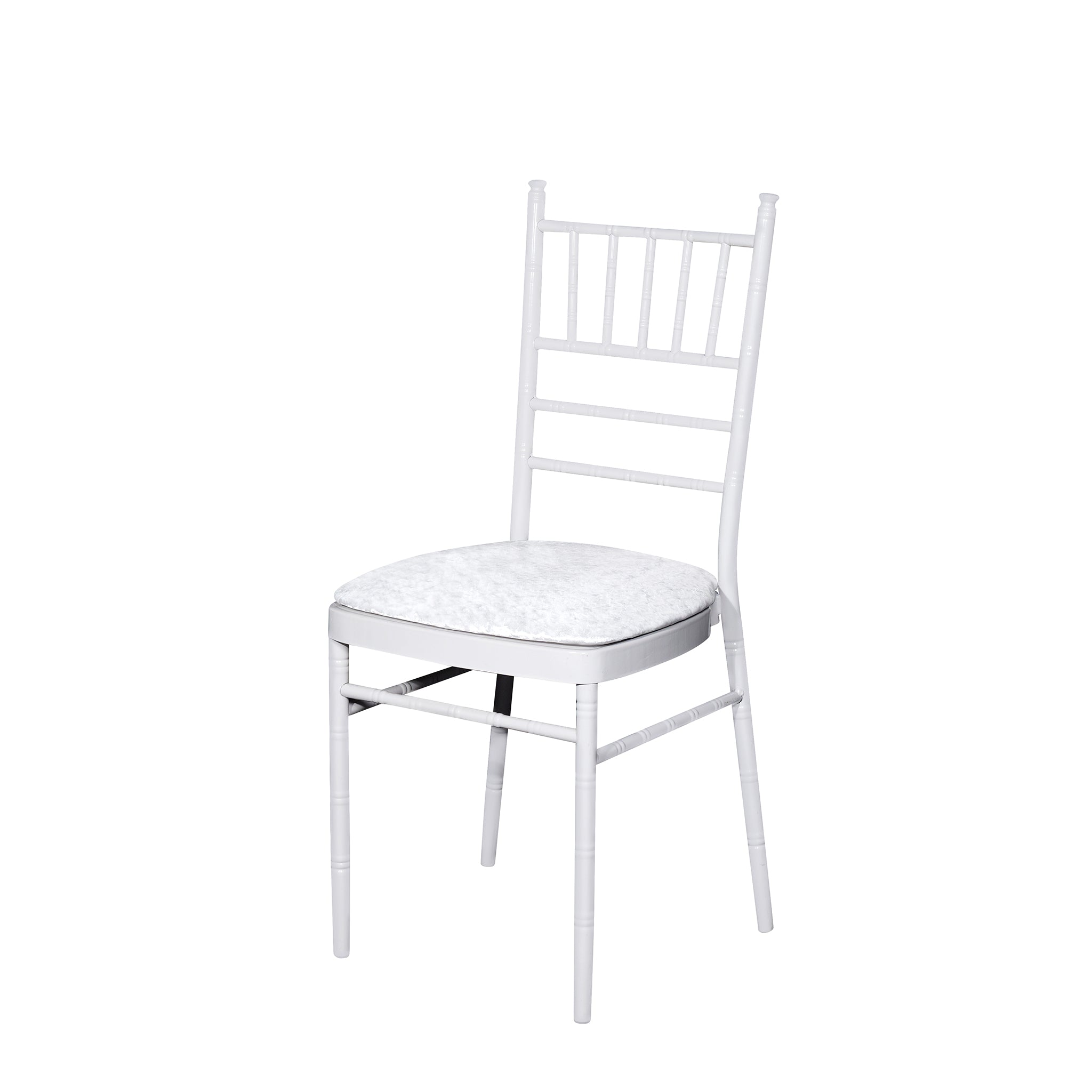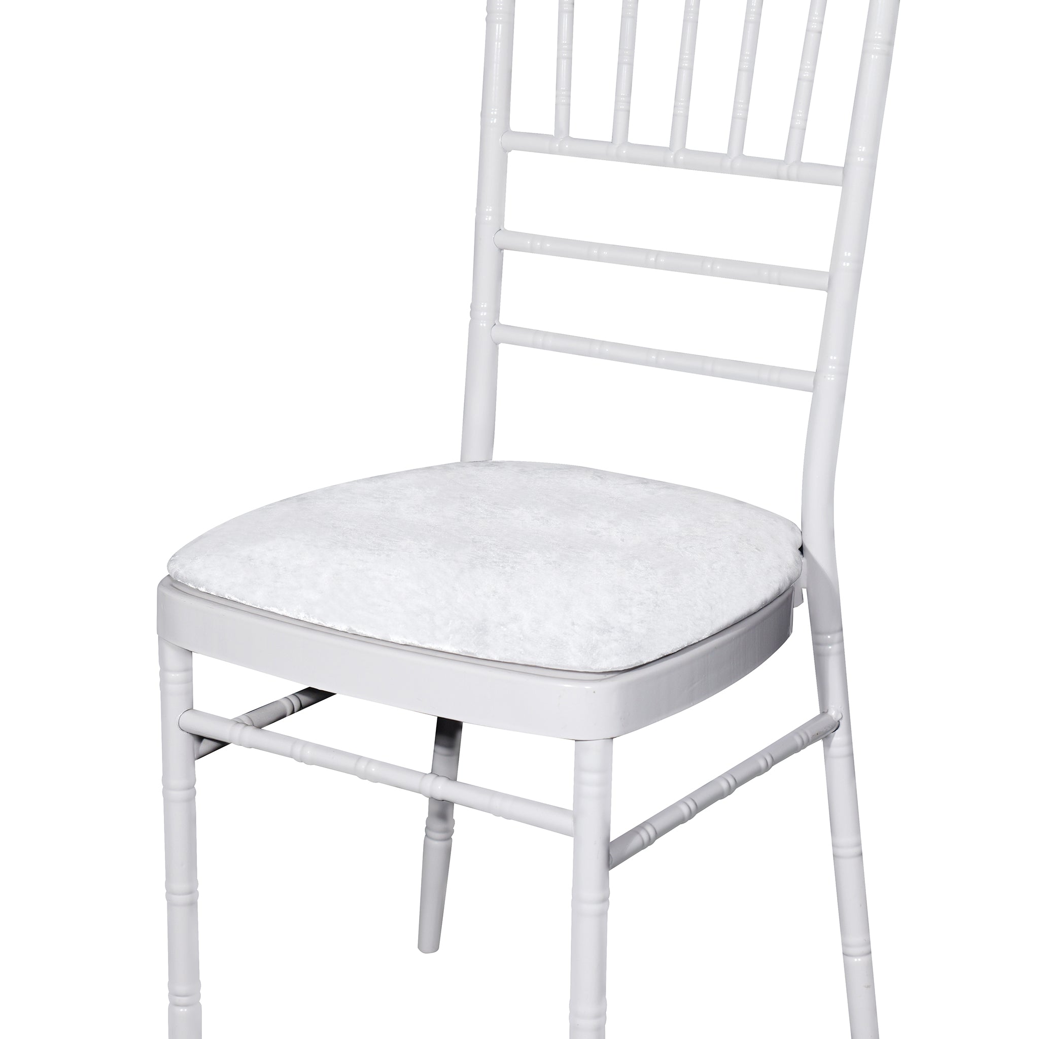 The Velvet Spandex Chiavari Seat Pad Covers in White brings a subtle, luxurious vibe to your seating arrangements. These covers give your event a polished look like no other.