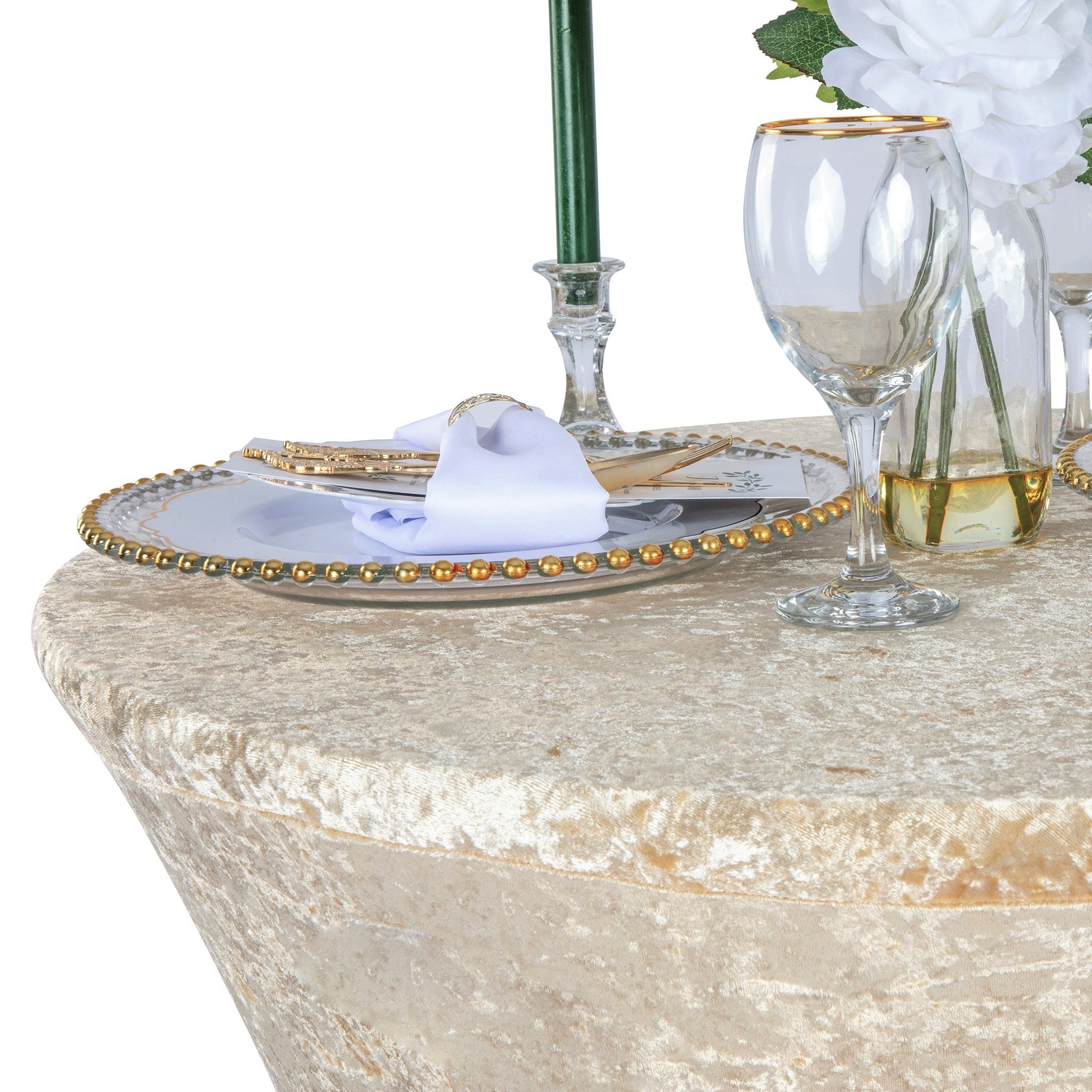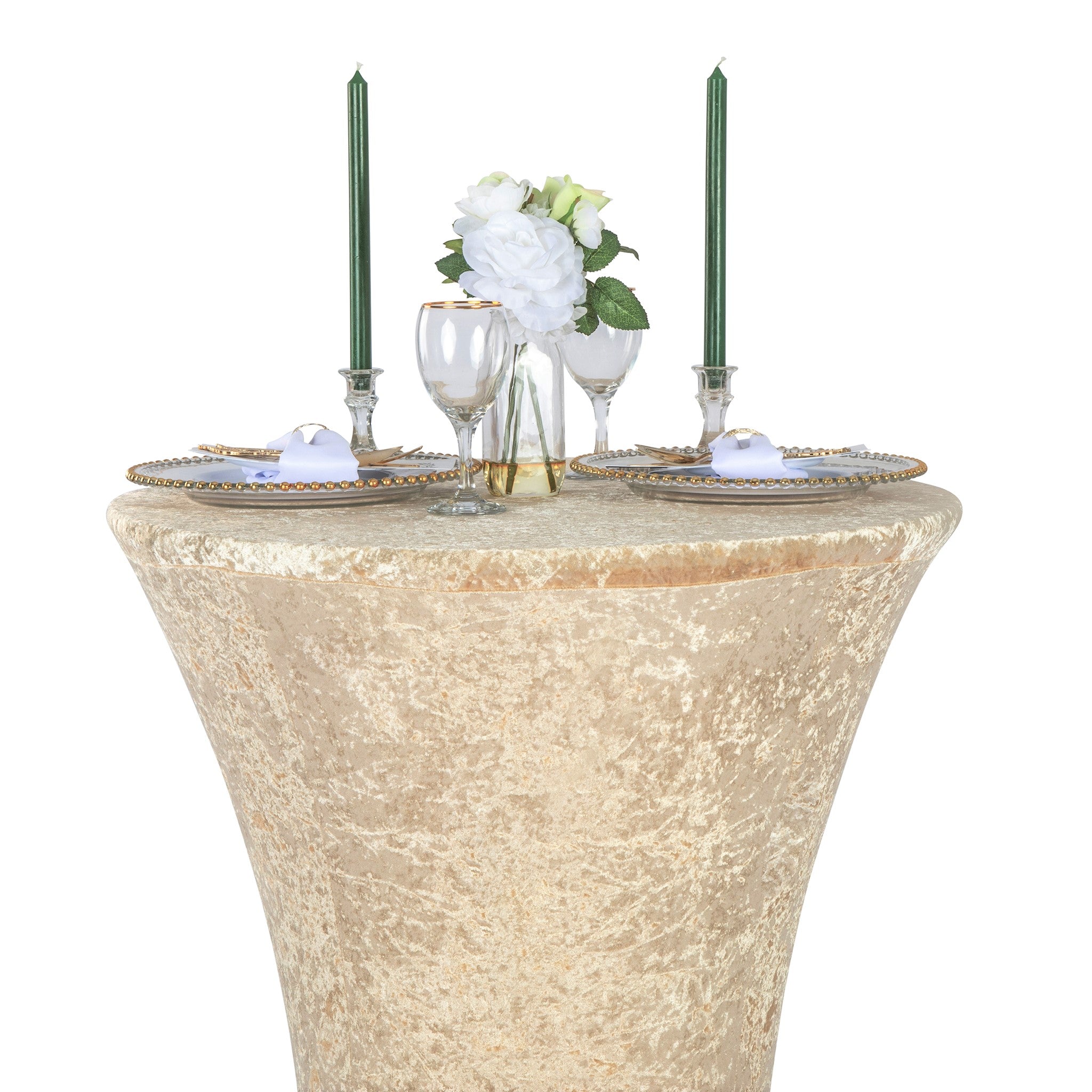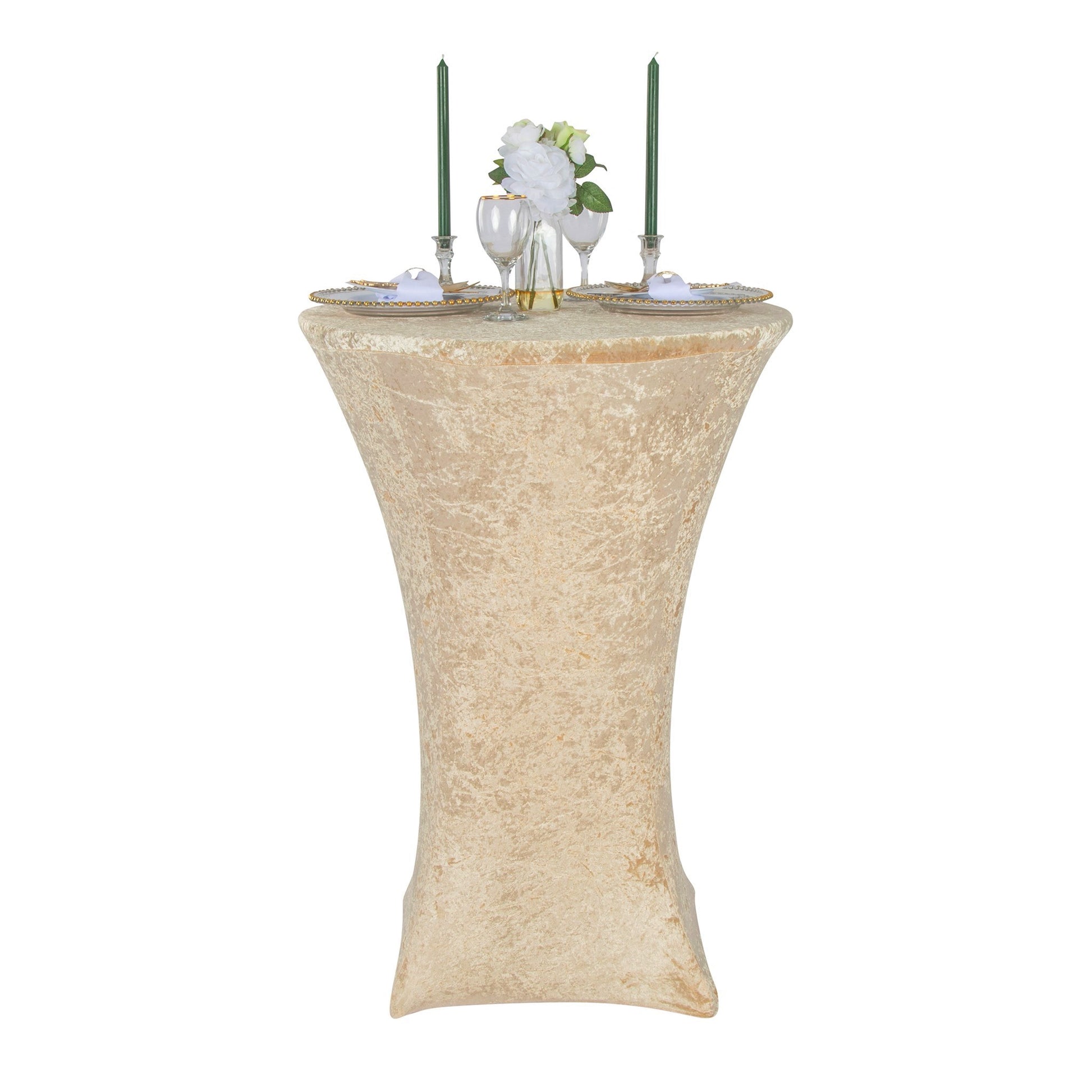 Make your special occasion or wedding happy hour dazzle with our elegant Velvet Spandex Cocktail Table Cover 32" Round - Champagne! This premium high boy table linen is the popular, must-have spandex table cover you've seen everywhere and now it's ready to add a dash of luxury to your next event, too!