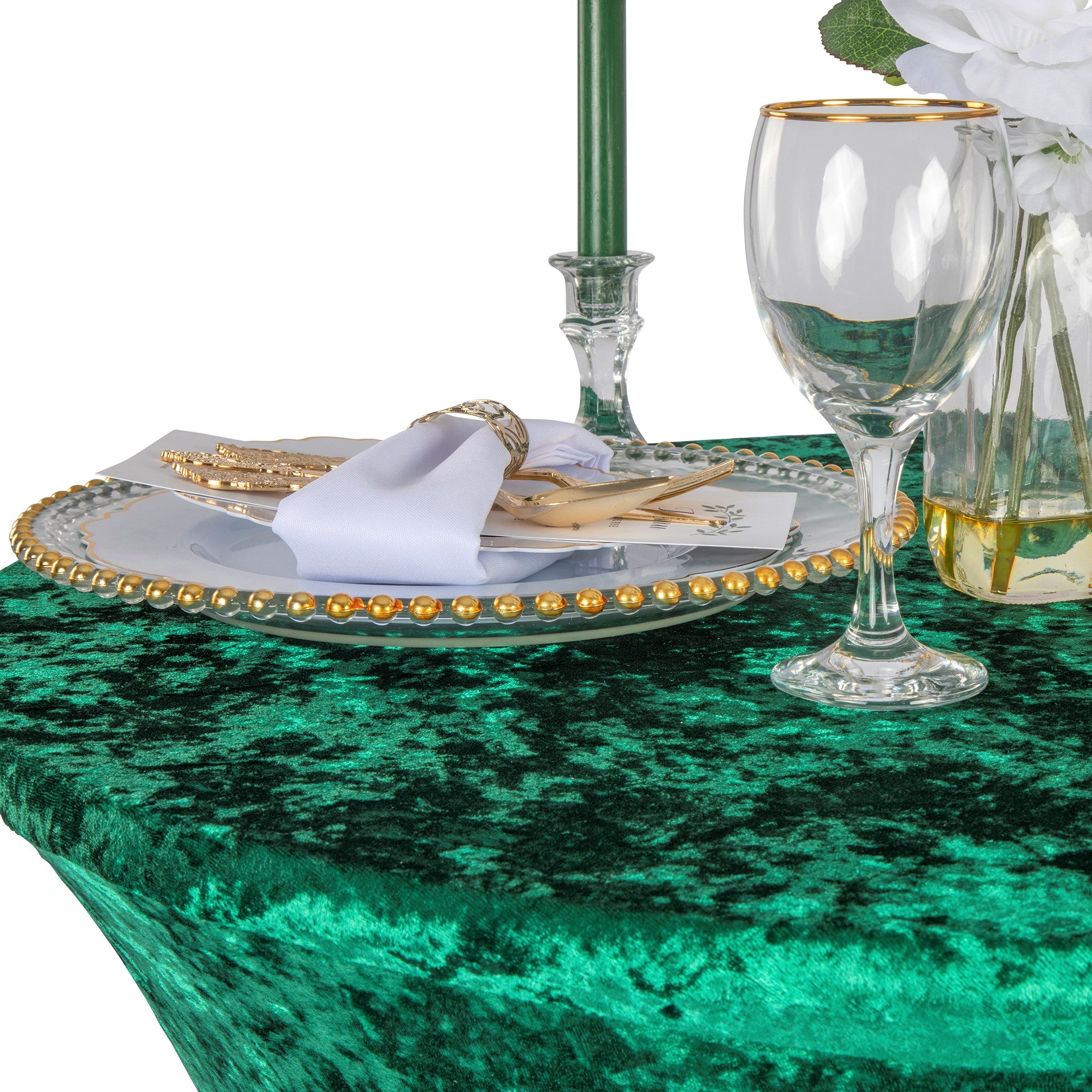 Luxe velvet fabric is perfect to highlight cake tables, dessert tables, sweetheart tables, head tables, gift, and guestbook tables, as well as guest of honor tables. Use velvet linens at wedding ceremonies and receptions, bridal showers, baby showers, quinceaneras, anniversary parties, or any other special event. Pair with any of our matching velvet hightop coves with matching velvet table linens, chair bands drapes, and more for cohesive luxurious event designs!