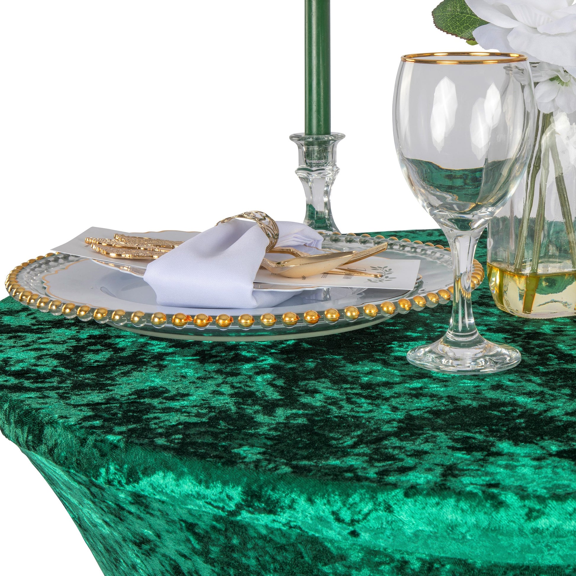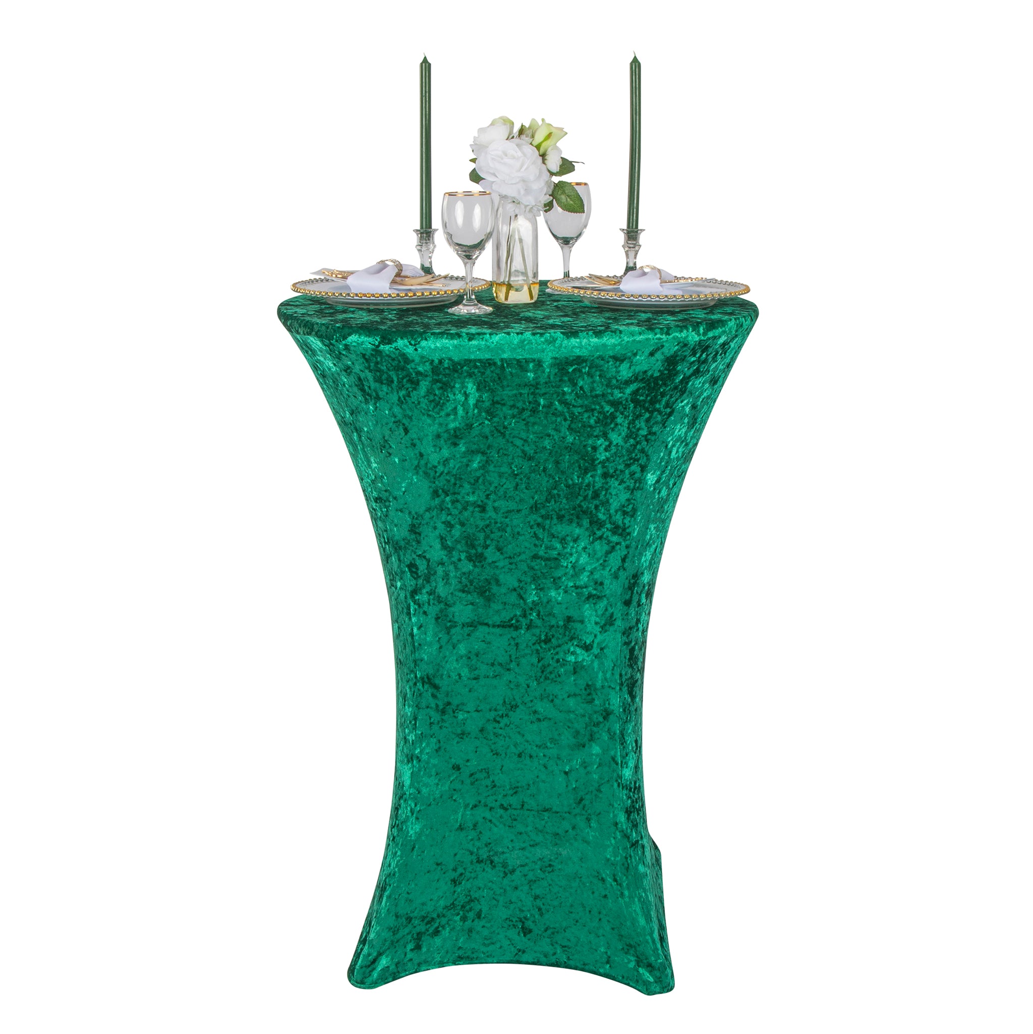Make your special occasion or wedding happy hour dazzle with our elegant Velvet Spandex Cocktail Table Cover 32" Round - Emerald Green! This premium high boy table linen is the popular, must-have spandex table cover you've seen everywhere and now it's ready to add a dash of luxury to your next event, too!