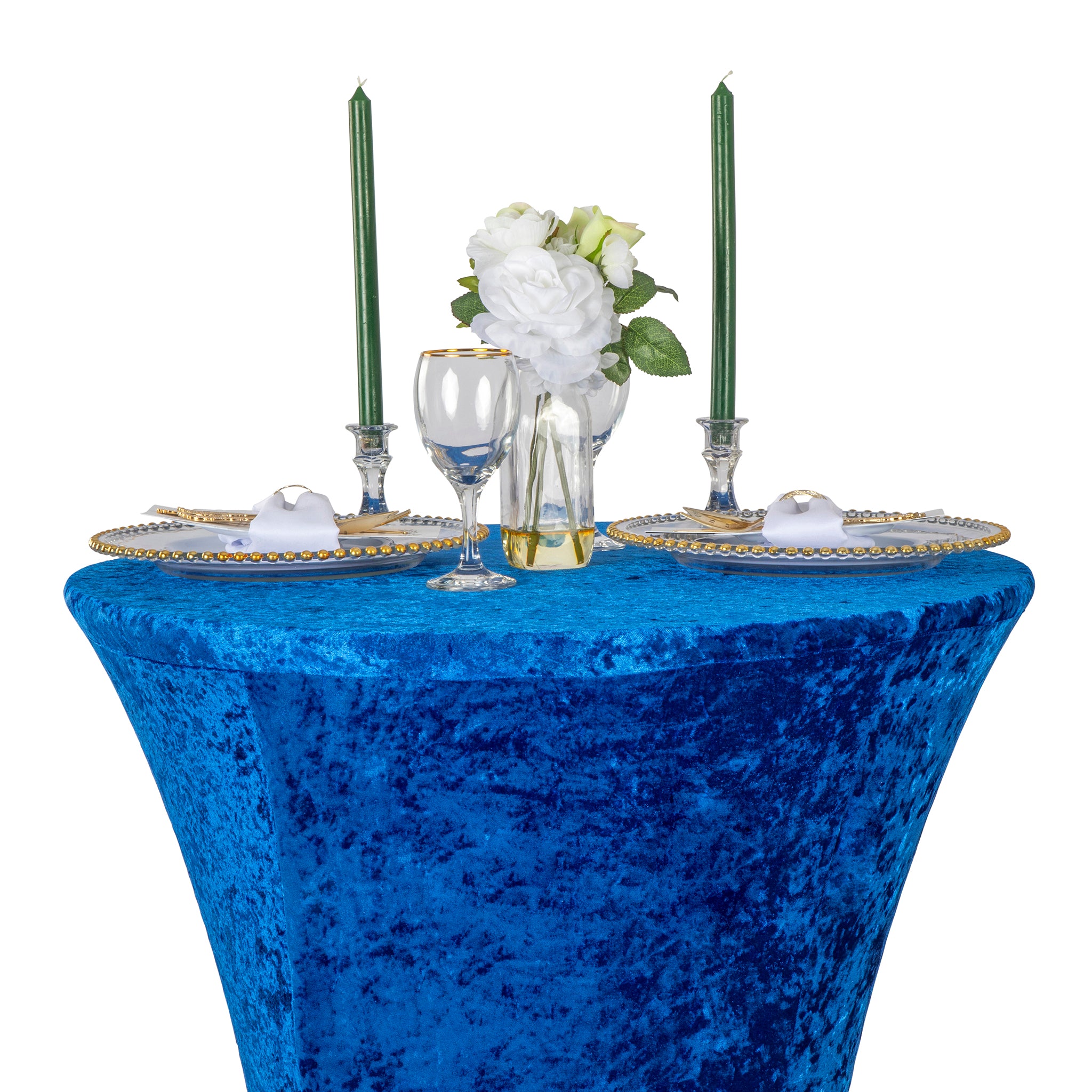 Make your special occasion or wedding happy hour dazzle with our elegant Velvet Spandex Cocktail Table Cover 32" Round - Royal Blue! This premium high boy table linen is the popular, must-have spandex table cover you've seen everywhere and now it's ready to add a dash of luxury to your next event, too!