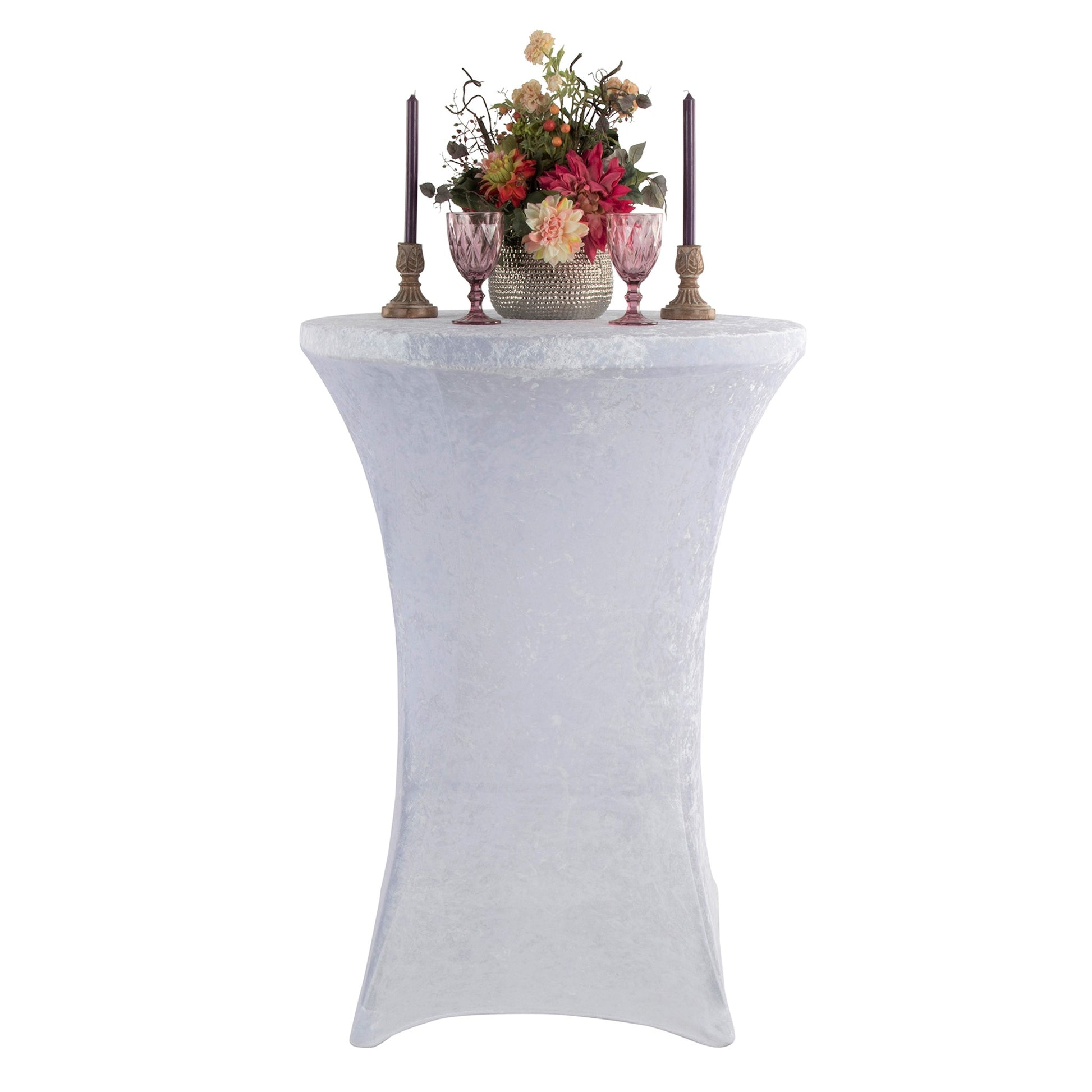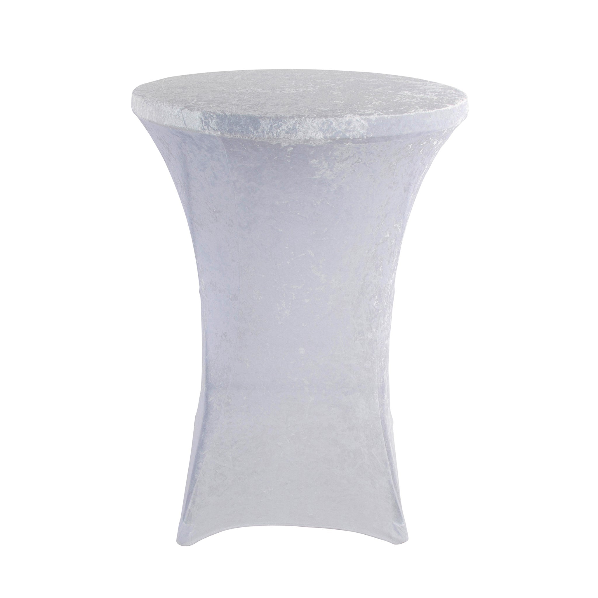 Make your special occasion or wedding happy hour dazzle with our elegant Velvet Spandex Cocktail Table Cover 32" Round - White! This premium high boy table linen is the popular, must-have spandex table cover you've seen everywhere and now it's ready to add a dash of luxury to your next event, too!