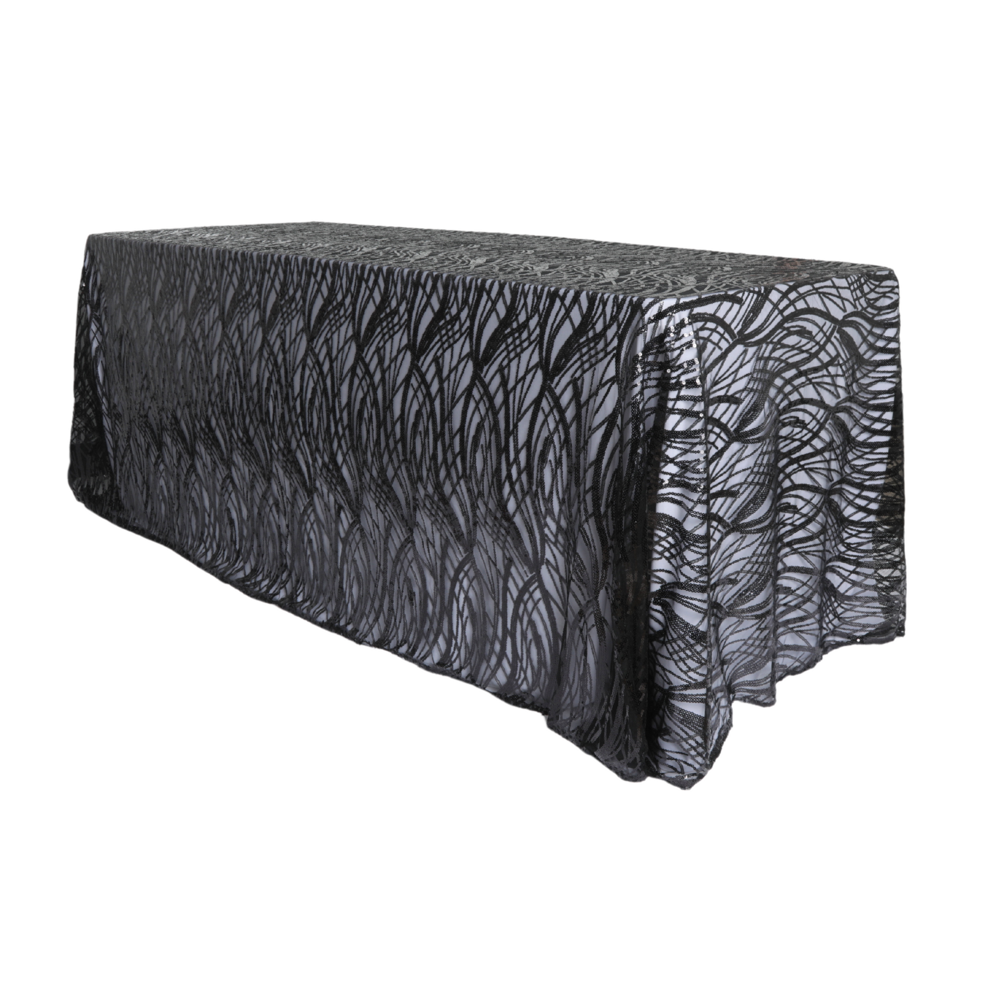 Wave Sequin Mesh Tablecloth 90”x132” Rectangular Black