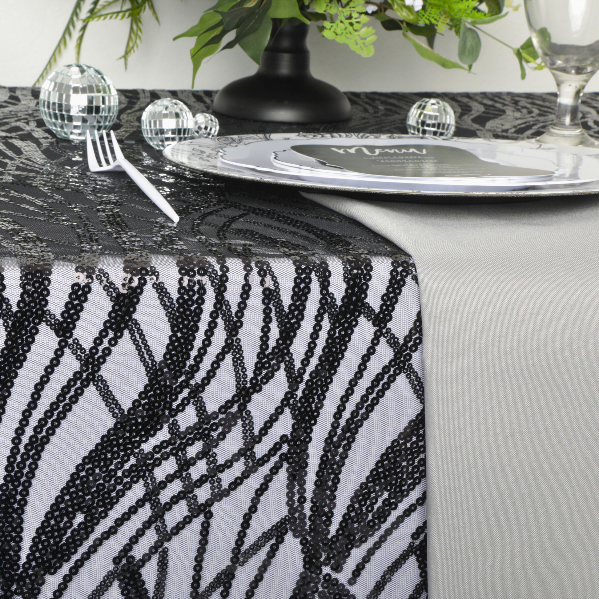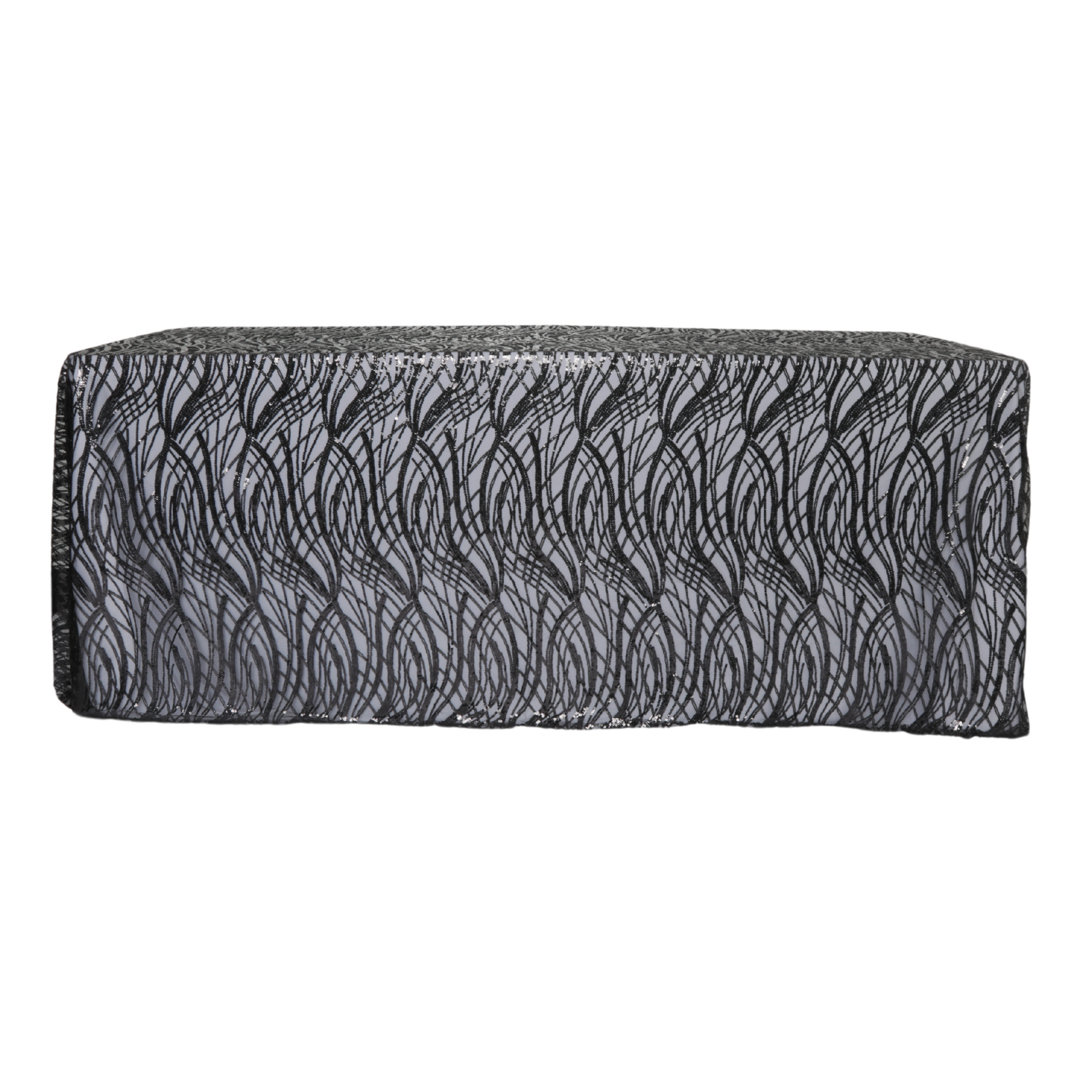Transform your event into a sophisticated spectacle with the mesmerizing elegance of our 90x132 Rectangular Sequin Tablecloth in Black color. These tablecloths have a striking wave pattern with sequins that sparkle in the light!