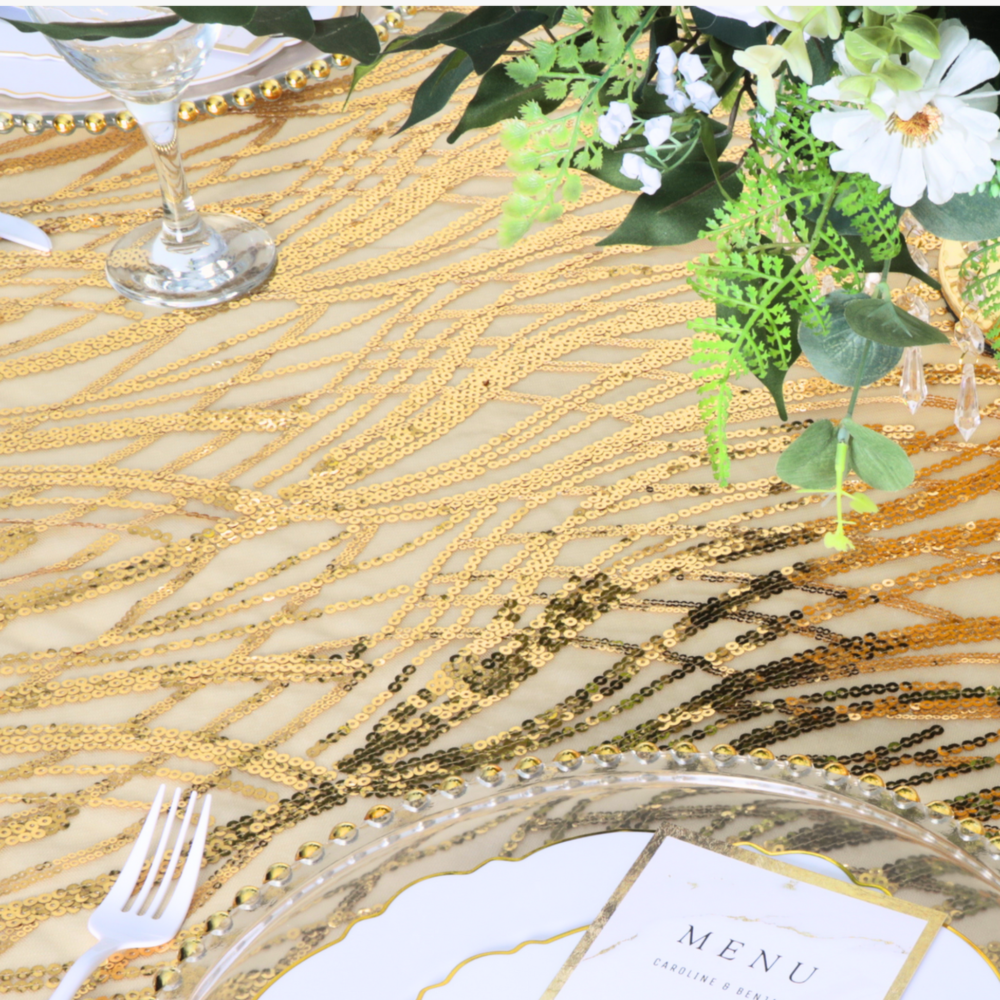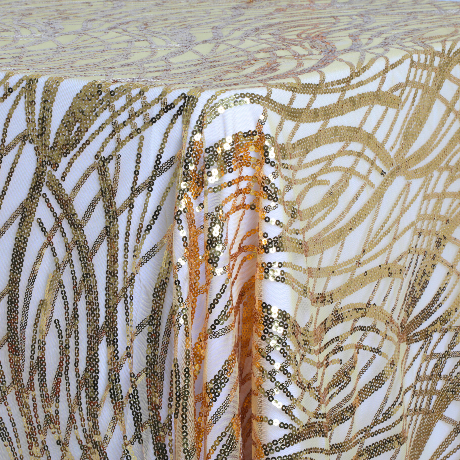 Wave Sequin Mesh Tablecloth 90”x132” Rectangular Gold