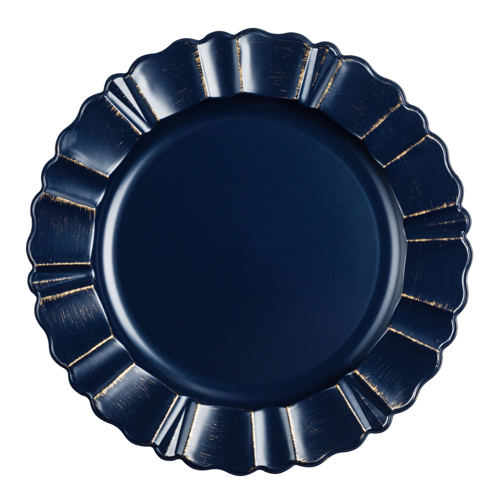 Charger plates are designed to complement and unify your theme. To benefit from the look, select chargers that coordinate your overall decor, including other dinnerware, flatware, and table linen. Enhanced with a scalloped rim of antiqued styling, this generously sized 13" charger holds dinner plates or soup bowls for a sleek, pulled-together look. The classic style is suitable for all decor themes from rustic to traditional. Our wholesale charger plates are only for decorative purposes and are an economical way to upgrade your event aesthetic with a special touch without going over your budget.