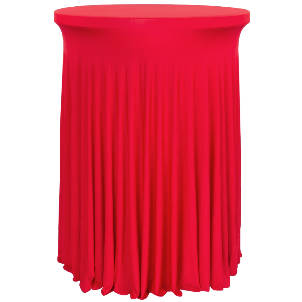 If you love the look of spandex but want a more organic flow to your tables our Wavy Spandex Cocktail Table Covers are perfect for you! Our Wavy Spandex Cocktail Table Cover design differs from traditional spandex table covers by providing a naturally draped base rather than a fitted slope. Each slip-on cover is easy to set up, taking only a minute to place the securely-sewn fitted top onto your table. Made of the same high-quality spandex as our standard spandex table covers (commercially known as Lycra), each wholesale table linen is durable and designed for use after use.
