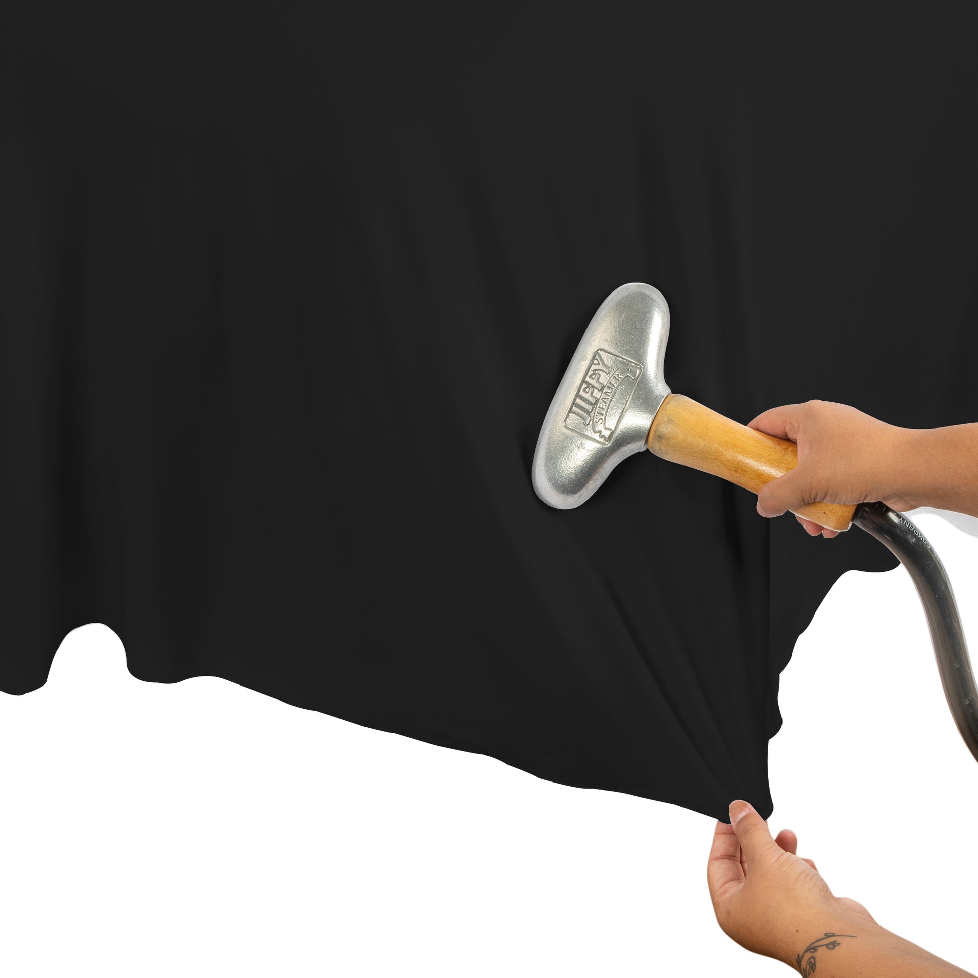 Decorating round banquet tables for buffet tables, sign-in tables, dessert tables, and more with the Wavy Spandex Table Cover 5ft Round - Black. This easy-to-use spandex table linen offers the same stretchy and easy-care qualities as stretch spandex table covers, but with a sophisticated twist. This flowy wavy spandex table cover design differs from traditional fitted spandex table covers by providing a naturally cascading wavy fabric rather than a fitted stretch look. Each spandex slip-on cover only takes a minute to place securely over round tables saving valuable time.
