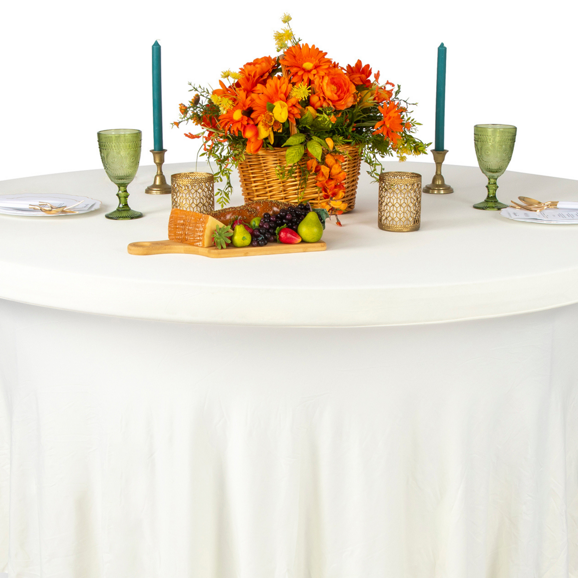 Designed of the same durable spandex as our standard spandex table covers (commercially known as Lycra), each wholesale round banquet table linen is durable and designed for use after use.