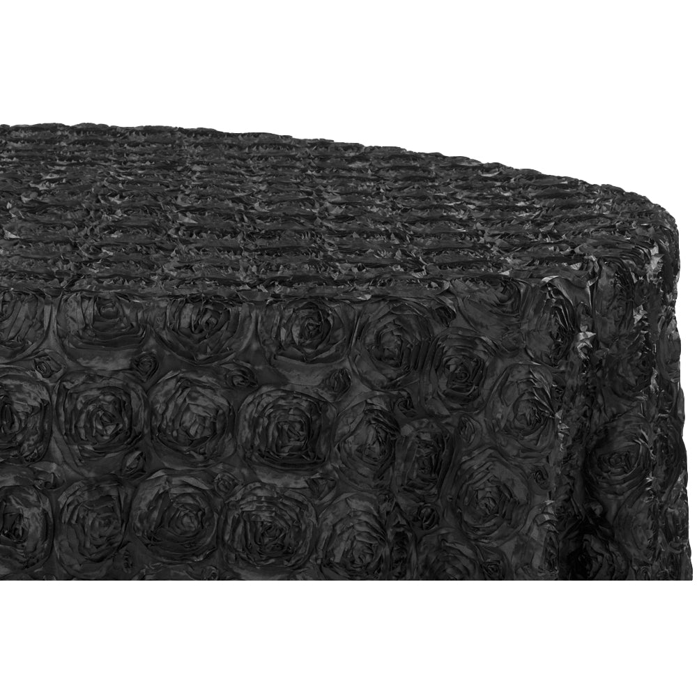 Make a stunning impression with our Wedding Rosette Satin Tablecloths! Don't let the name "Wedding Rosette" limit you, our beautiful tablecloths are perfect for baby showers, Quinceaneras, birthday celebrations, and any other special occasion. Each tablecloth is constructed of a satin background covered in fantastic rosettes with smaller rosettes nestled in the spaces between them. Our Wedding Rosette Satin Tablecloths will be the memorable decorative detail of your special day!