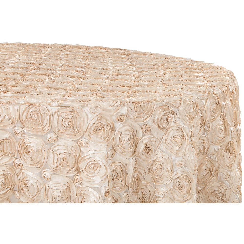 Make a stunning impression with our Wedding Rosette Satin Tablecloths! Don't let the name "Wedding Rosette" limit you, our beautiful tablecloths are perfect for baby showers, Quinceaneras, birthday celebrations, and any other special occasion. Each tablecloth is constructed of a satin background covered in fantastic rosettes with smaller rosettes nestled in the spaces between them. Our Wedding Rosette Satin Tablecloths will be the memorable decorative detail of your special day!