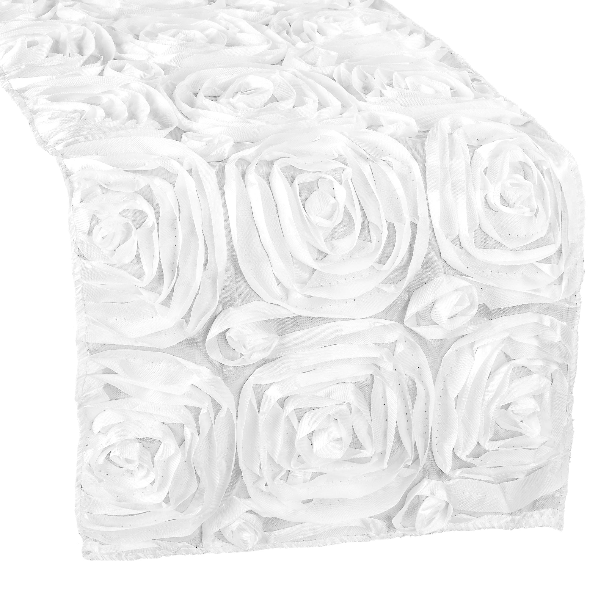 Make a stunning impression with our Wedding Rosette Satin Table Runners! Don't let the name "Wedding Rosette" limit you, our beautiful table runners are perfect for baby showers, Quincenearas, birthday celebrations, and any other special occasion. Each table runner is constructed of a satin background covered in fantastic rosettes with smaller rosettes nestled in the spaces between them. Our Wedding Rosette Satin Table Runners will be the memorable decorative detail of your special day!