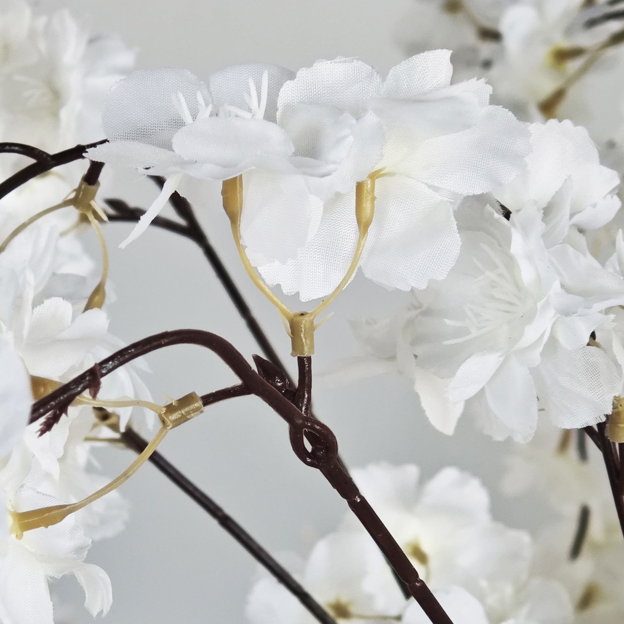 White represents a fresh start and serenity, making it an excellent choice for timeless and refined events. The white decor adds grace and complements any color scheme, allowing you to create a classic or modern event design. With this artificial weeping cherry blossom tree, you can achieve a breathtaking setting without worrying about wilting flowers. This way, you will ensure that your perfect setting remains just that from the beginning to the end.