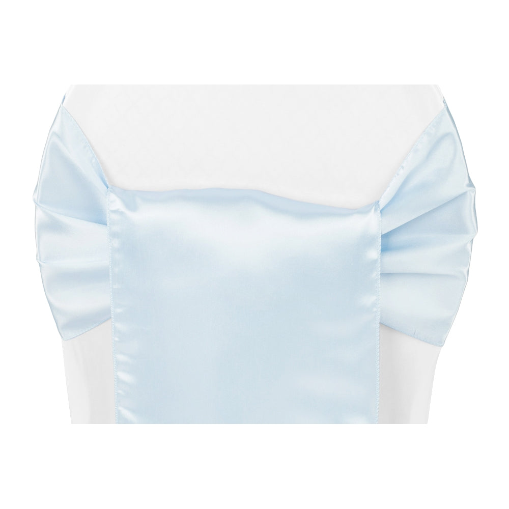 Introducing our exquisite collection of event linens featuring the captivating Wide Satin Chair Sash - Baby Blue. Transform your venue into a haven of sophistication and style with our extra wide satin chair sashes.